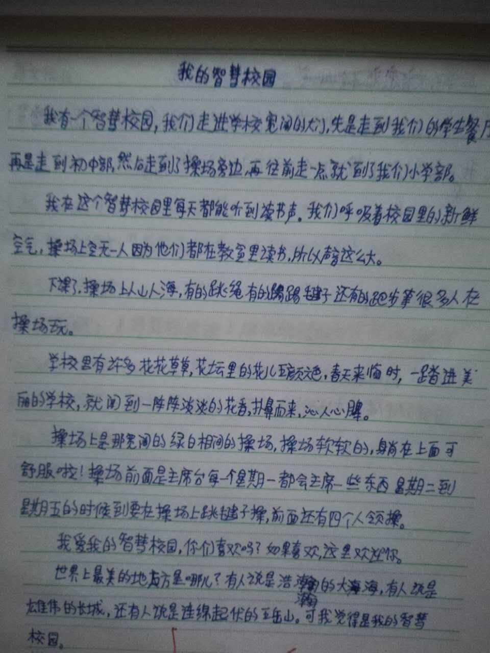 孩子第一次在网上发表文章,特别激动,天天叫我赶紧上传赶紧上传,可惜家里网速太慢又卡,隔了好几天才终于完成了孩子的心愿。虽然字写得不太好,文章描述也不是很完美,但却是孩子自己独立完成的作品,我很欣慰。孩子,加油!
