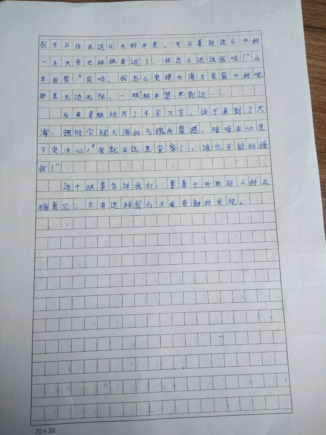 井底之蛙终于能听见忠言了,而不是盲目自大的守着自己小小的一片天地还不可一世,正是如此,他才能欣赏到浩瀚无垠的的大海,想法新奇独特。