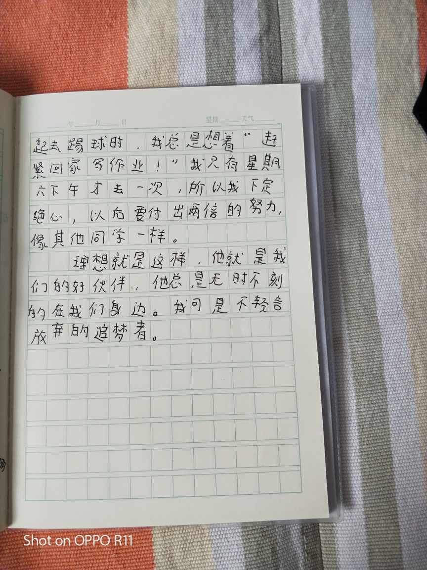 这篇文章,开头简洁明了,紧扣文题。后详细的写出了自己的理想,并具体写出为了理想想要实现的目标。全文感情真挚,加油吧,你的足球梦在你的努力下一定会实现的。