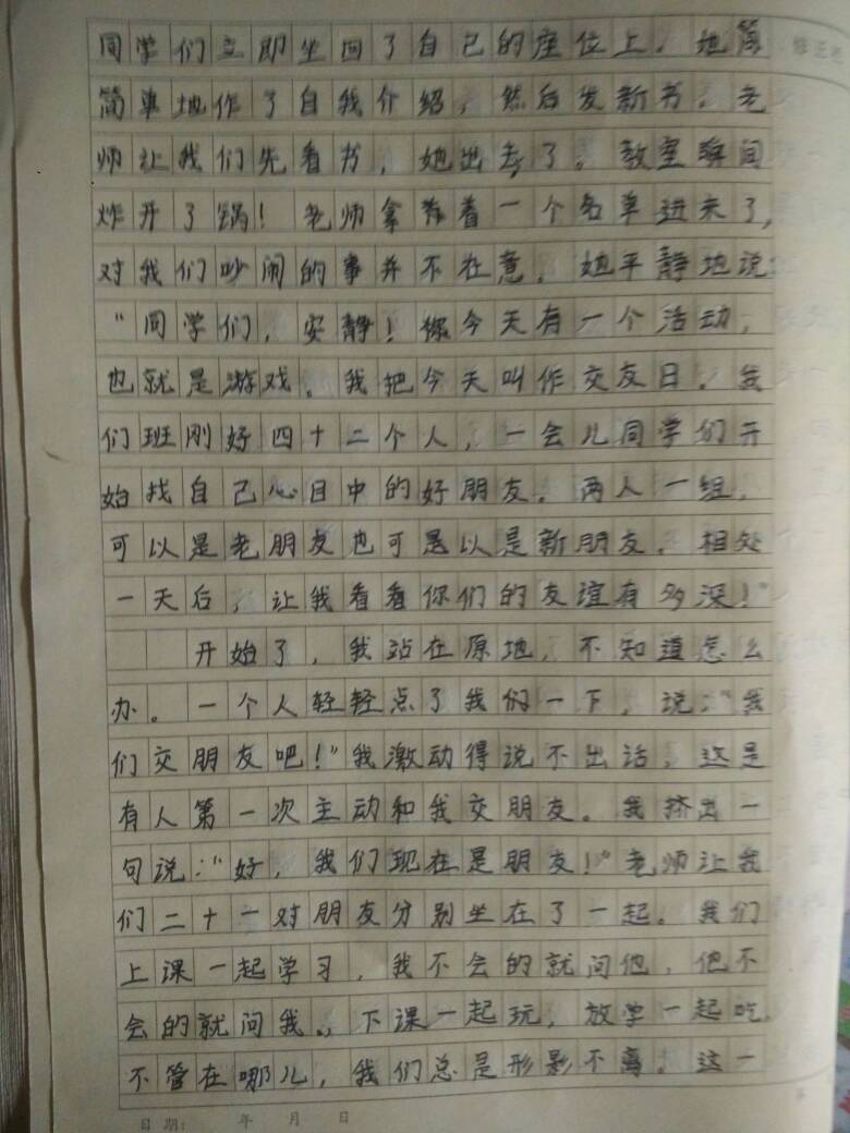 全班四十二个人,结下了二十一对朋友的事例太典型了,真有一种仪式感。真让我感叹于小学老师的智慧。因为这位小学老师,不仅清楚此时此刻孩子们最需要什么,而且还有自己朴素而有用的方法。对孩子来说,这位老师想必真会让记忆终生。 文章思路清晰,意脉连贯。首尾简洁有力,前后照应,末尾深化主题。文章思想内容集中,内涵积极向上,末尾的议论谈到了自己的感悟,让人信服。 但如果文中能有一些对人物的刻画性描写或细节描写,有一些衬托心情的景物描写等,文章会更精彩。