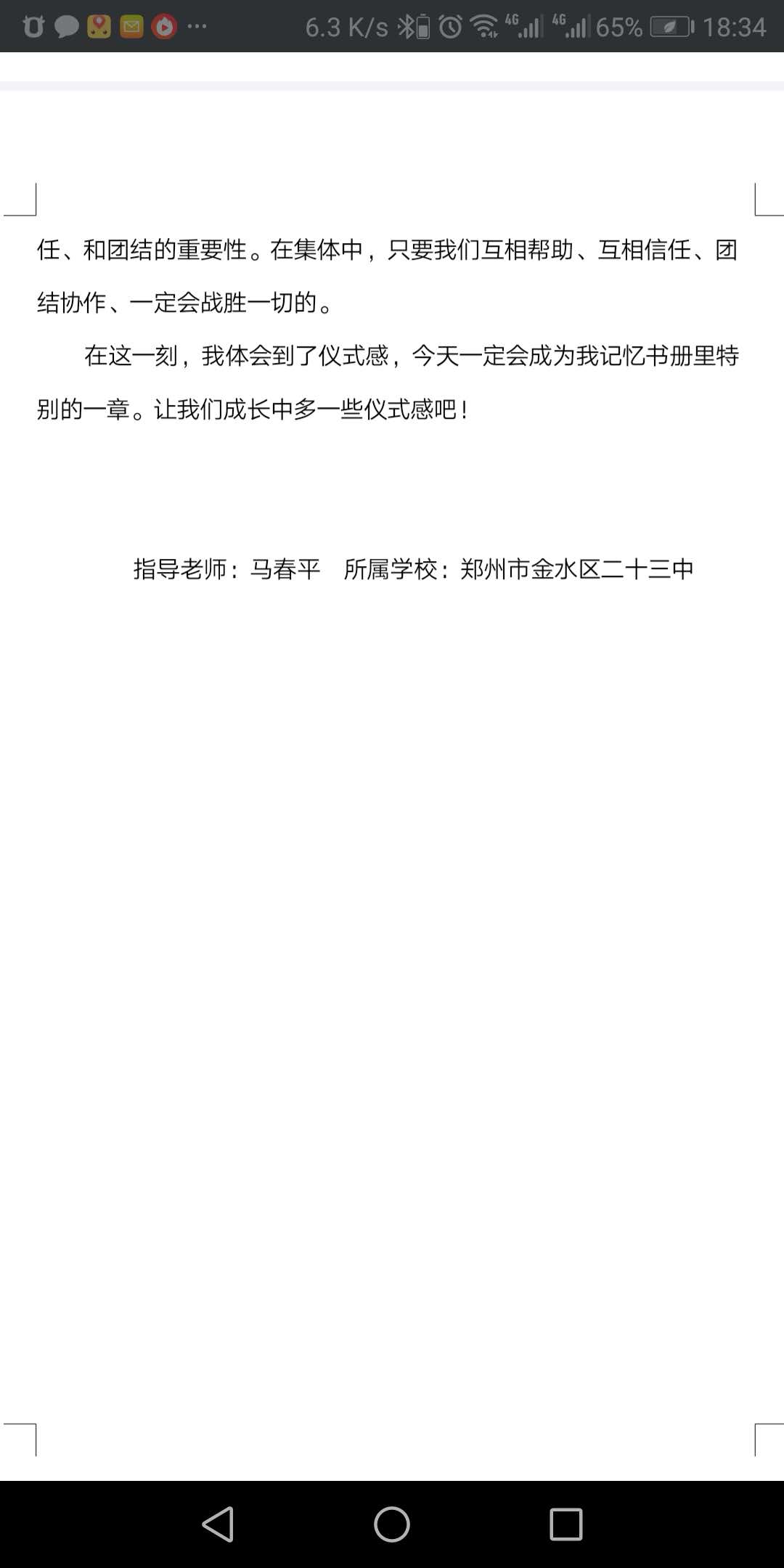 指导老师:马春平 所属学校:郑州市第二十三中学
