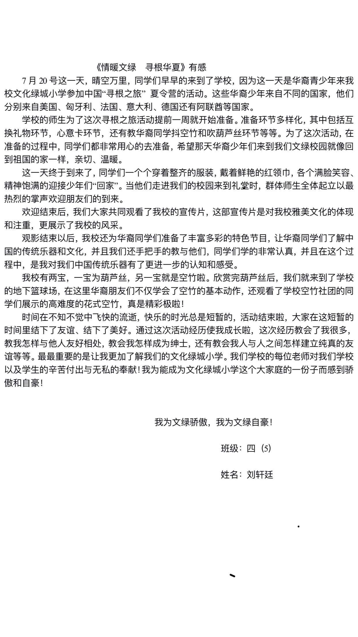《情暖文绿 寻根华夏》有感