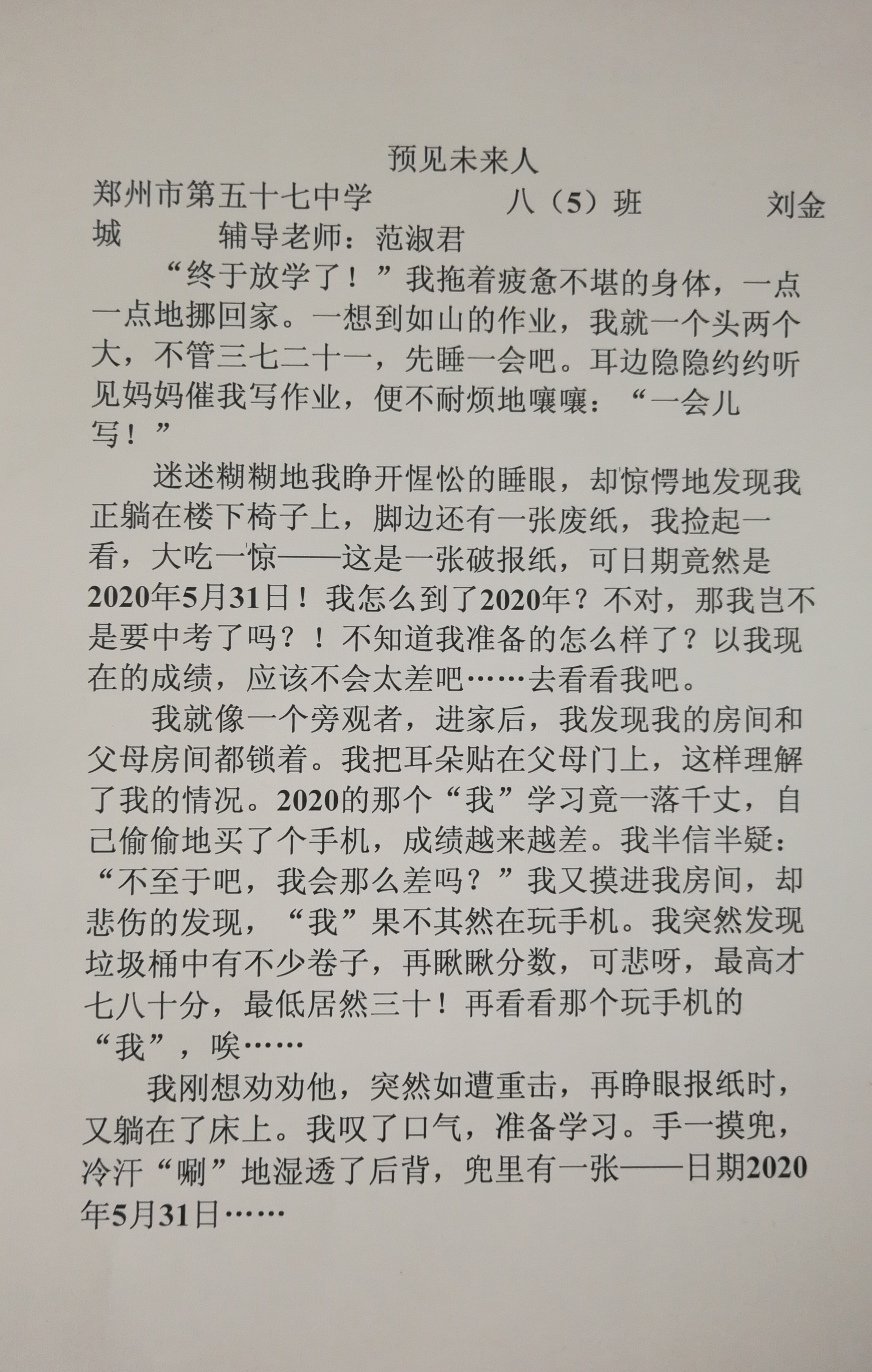 指导老师:范淑君 所属学校:郑州市第五十七中学