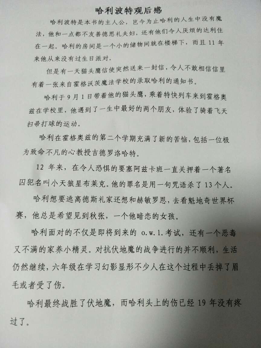 哈利波特读后感
