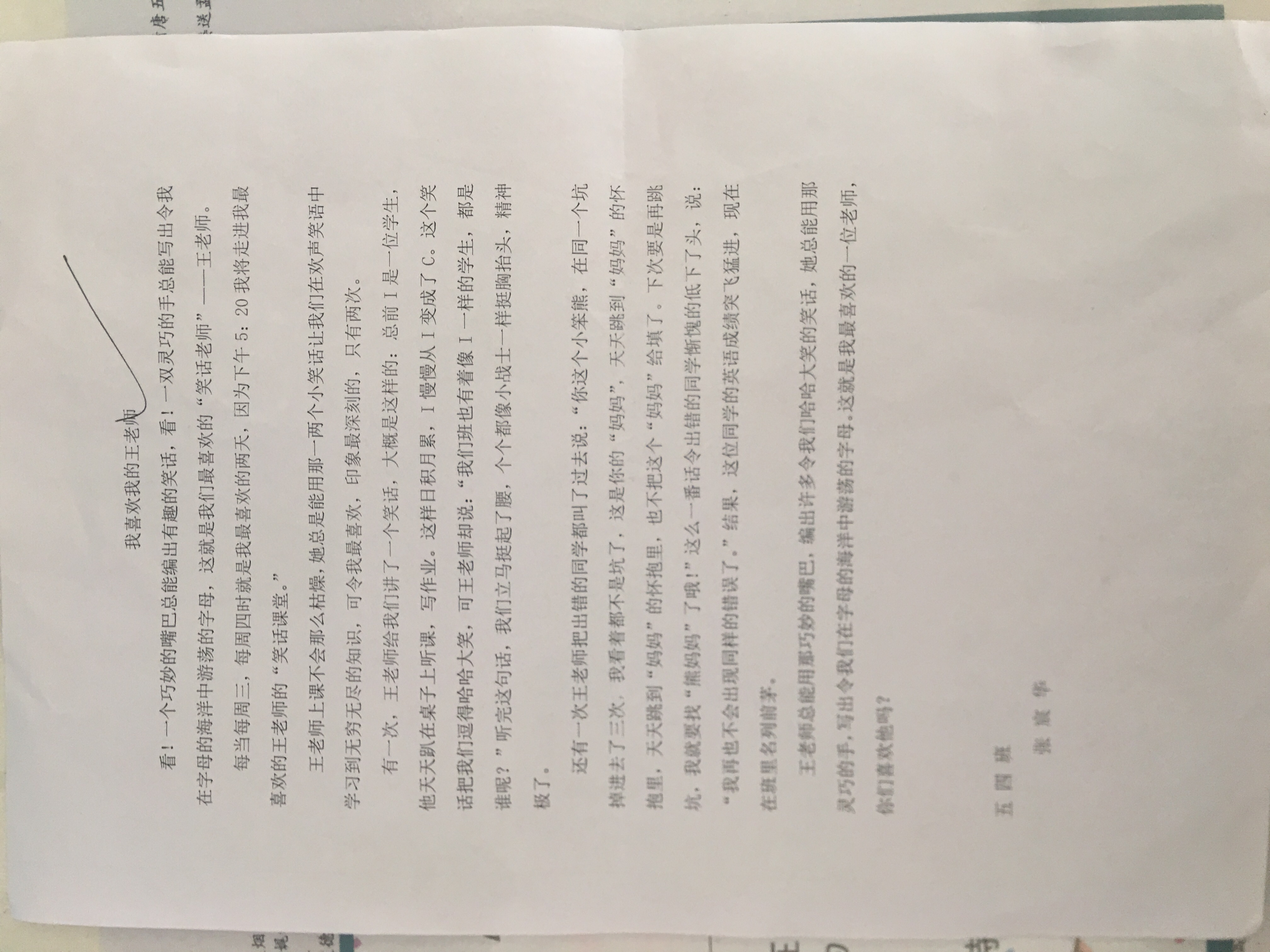 我喜欢我的王老师
