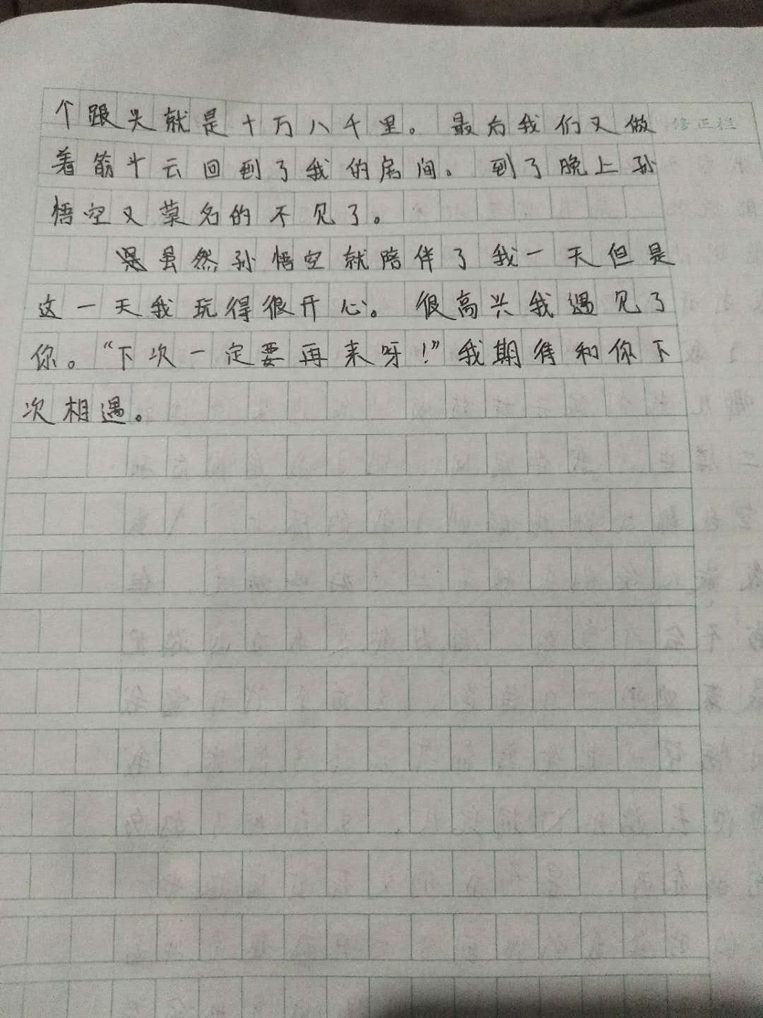 | 文章写的真是太逼真啦,和孙悟空的这一天真是玩儿的太爽了。特别是说弄了一床的猴毛你不介意的时候,我觉得你太可爱了,读到这儿时好像觉得孙悟空真的就像在眼前一样。文章用词准确,语句通顺,意思表达明白。是一篇不错的文章。 |