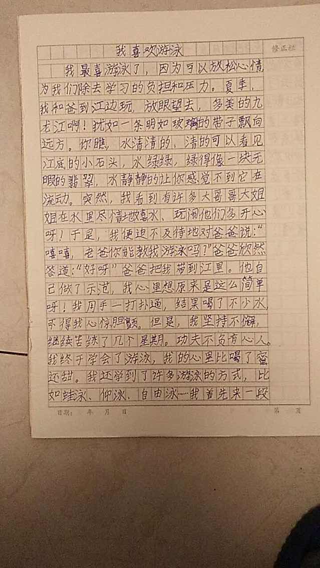 我喜欢游泳
