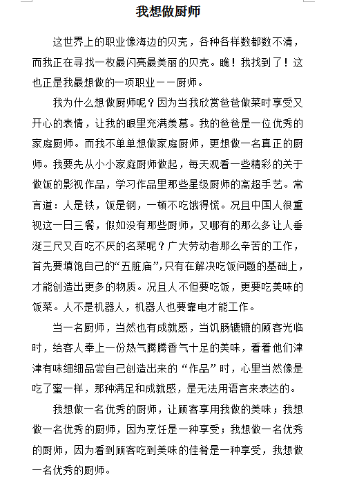我想做厨师