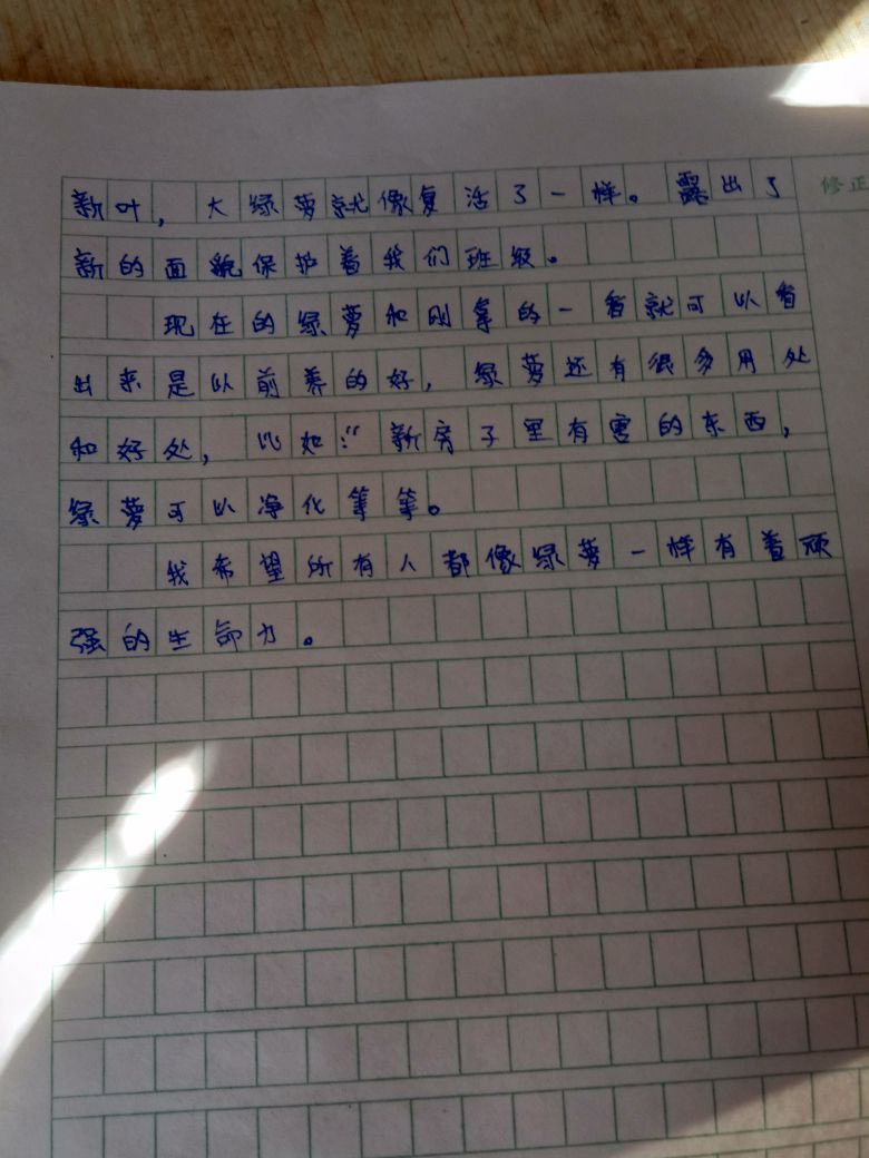 | 作文想象力丰富,语言精练,将绿萝的精神和可爱很好地写了出来。语言有生气,文章见精神。这样一篇充满智慧和可爱的文章,是我所喜欢的文章,希望你继续努力,以后多观察,多思考,写出更多好的作品,让自己的小学生活更精彩。 |