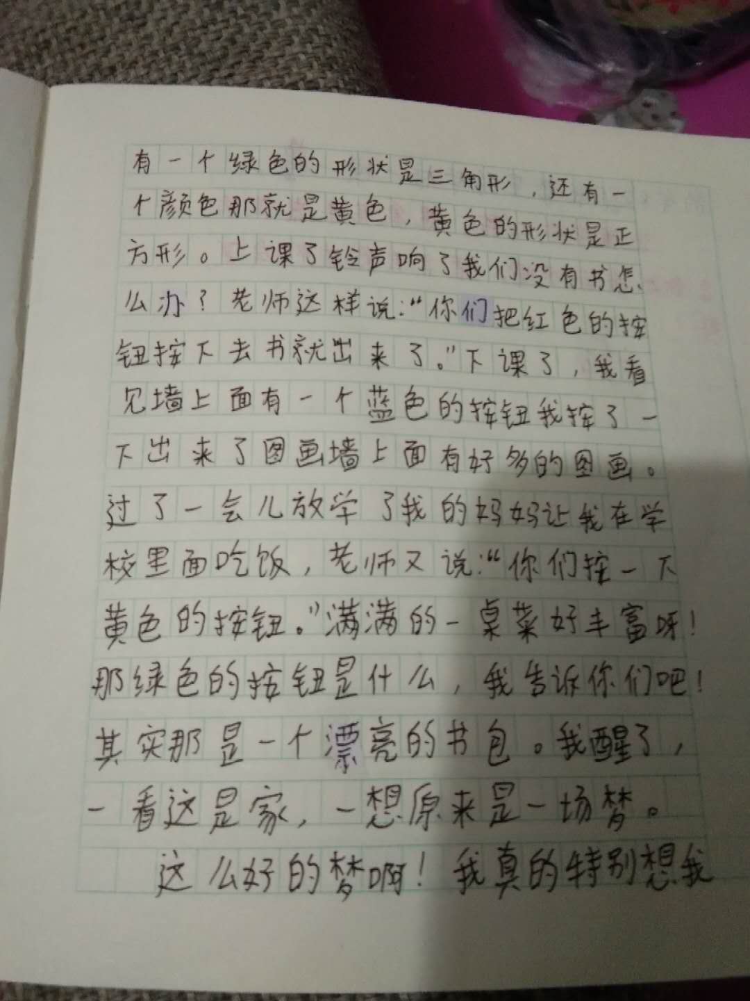 晓晗,你的想象很丰富,语言如果精炼一点就会更好了。你的字体还有些潦草,希望在以后的写作过程中,能够注重字体。