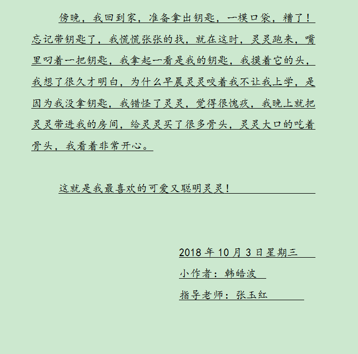 指导老师:张玉红 所属学校:登封市少室路小学