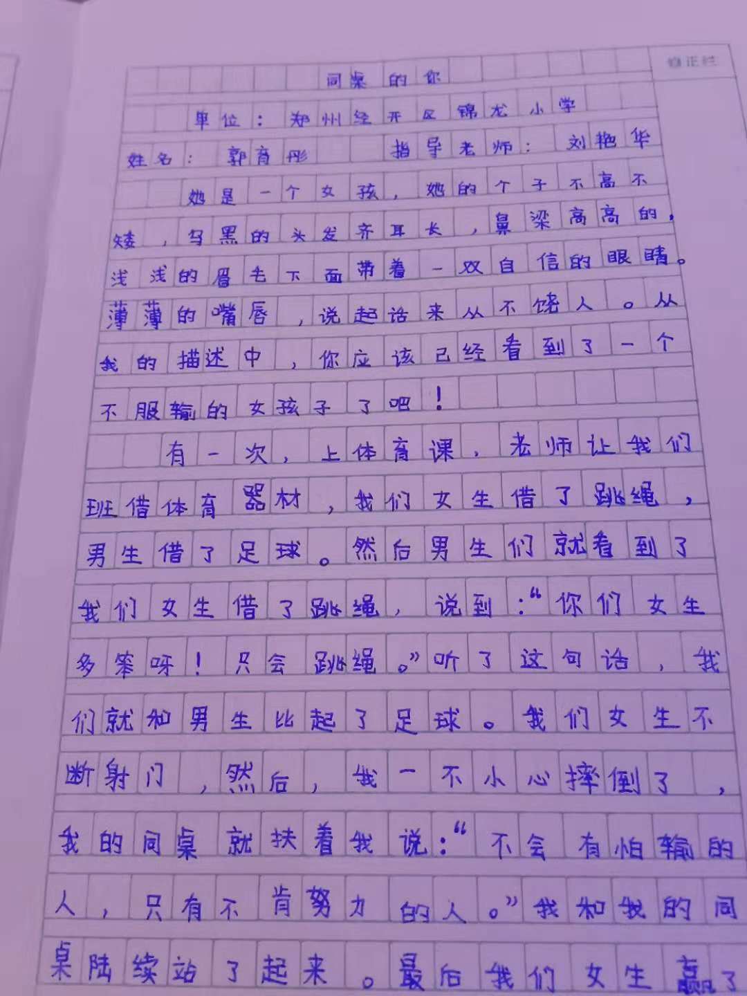 本文通过描写我和同桌之间发生的事,突出了同桌不服输,不服软的性格,语句通顺,中心突出,如果对人物的心里描写更加详细,就更好啦。
