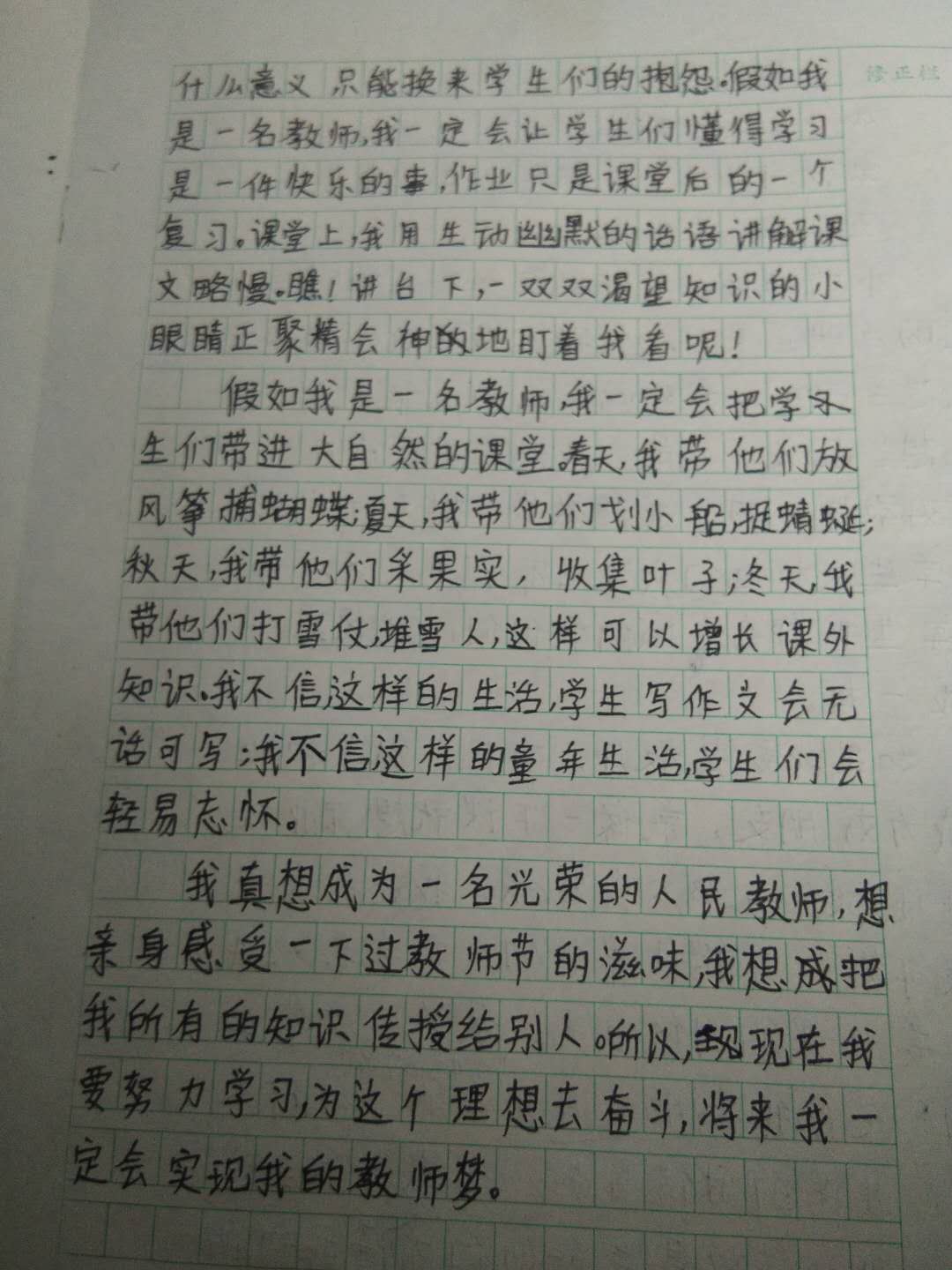 | 字迹工整,行文流畅,逻辑清晰,感情真切,内容令人反思,究竟怎样的老师才算好老师,或许老师也需要重新定义。很欣慰你是一个非常有自己想法的孩子,也坚信通过努力,你可以实现自己的梦想,加油! |