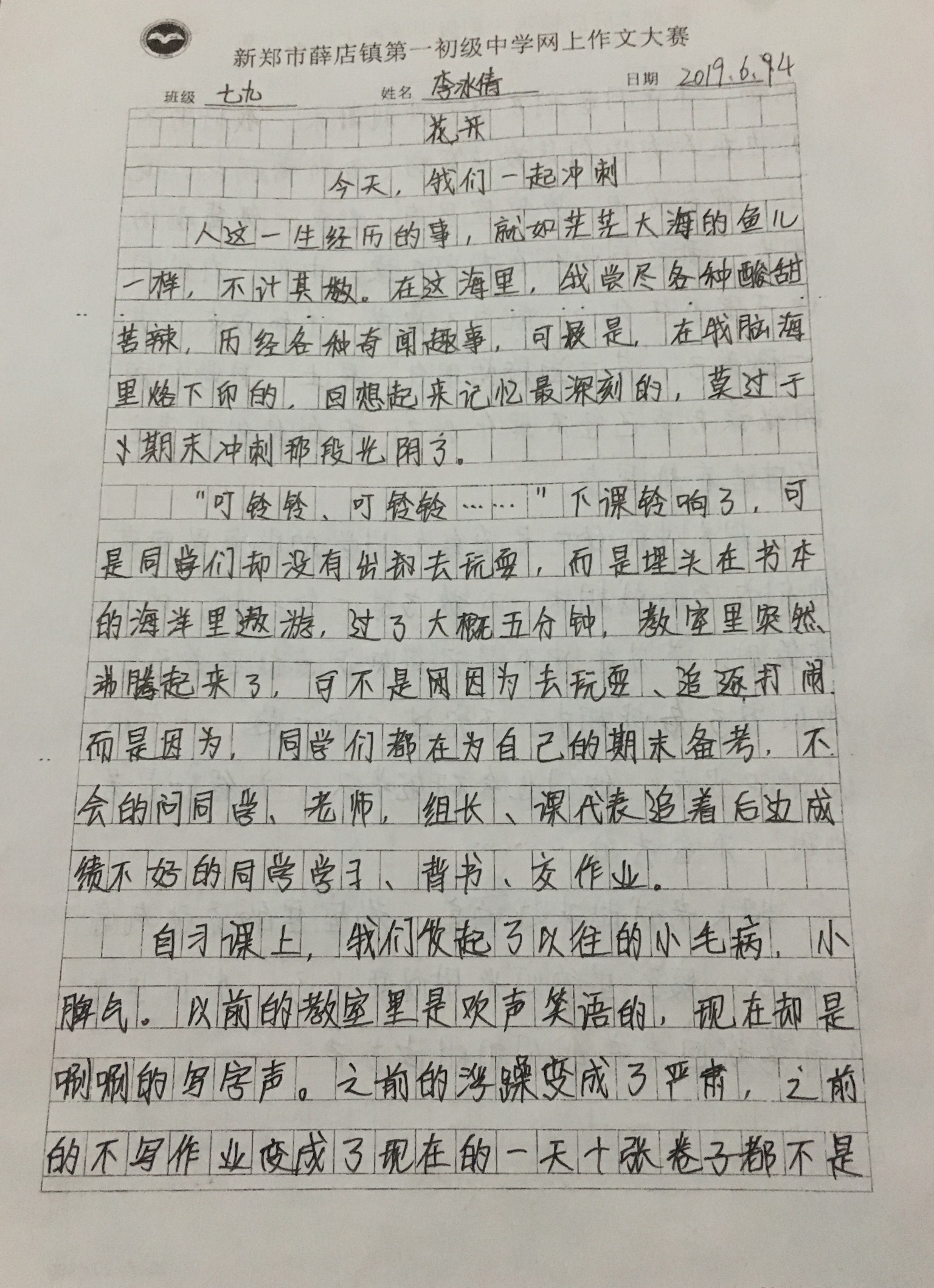 指导老师:李金花 所属学校:新郑市薛店镇第一初级中学