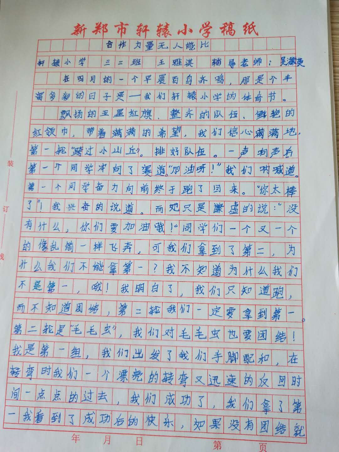 指导老师:吴淑英 所属学校:新郑市轩辕小学
