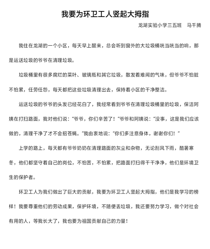 《我要为环卫工人竖起大拇指》