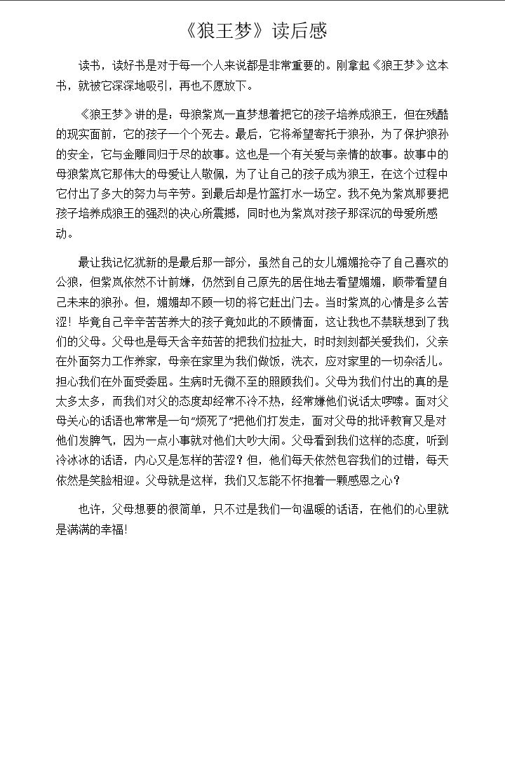 《狼王梦》读后感