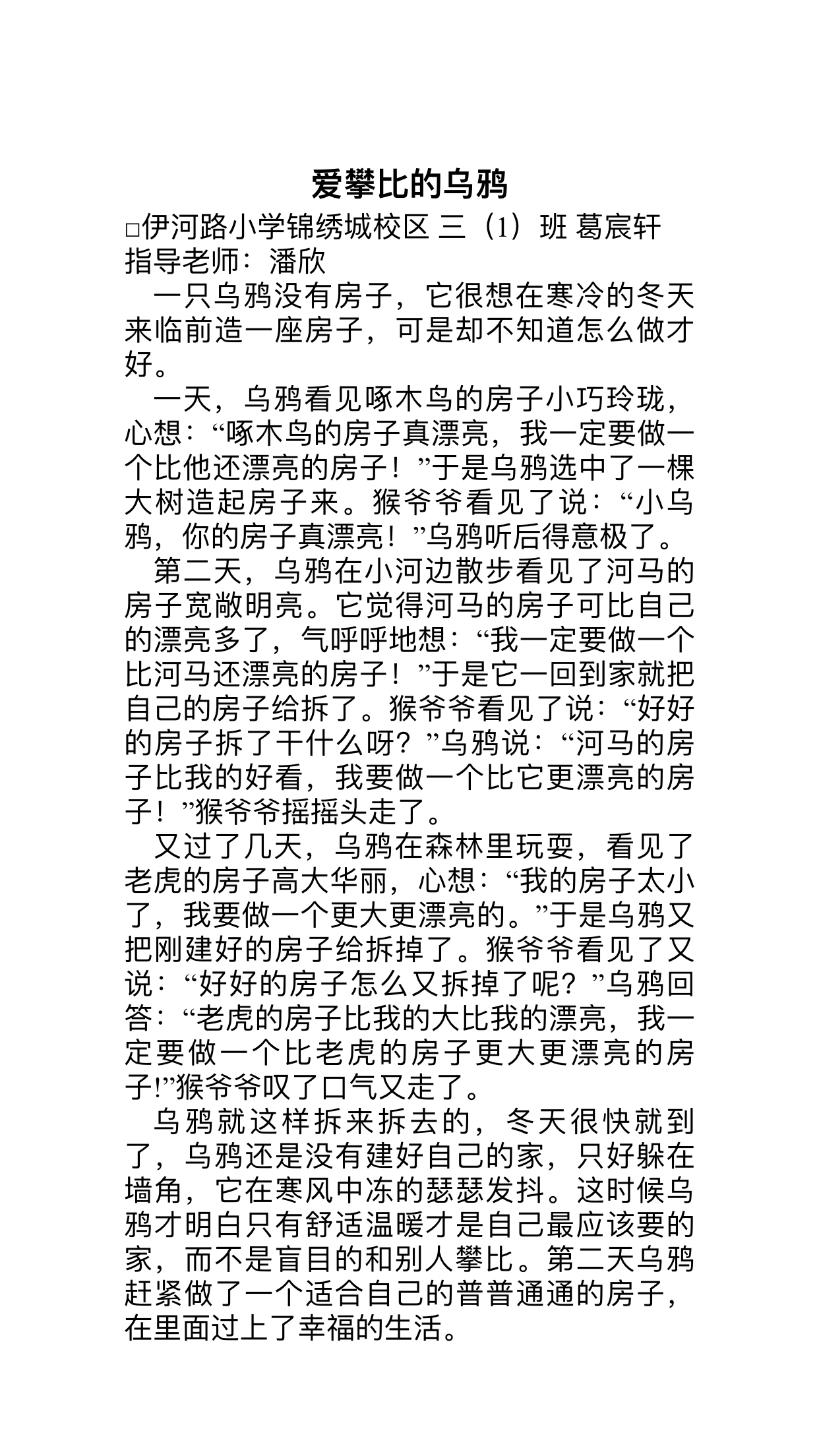 指导老师:潘欣 所属学校:郑州市中原区锦绣小学