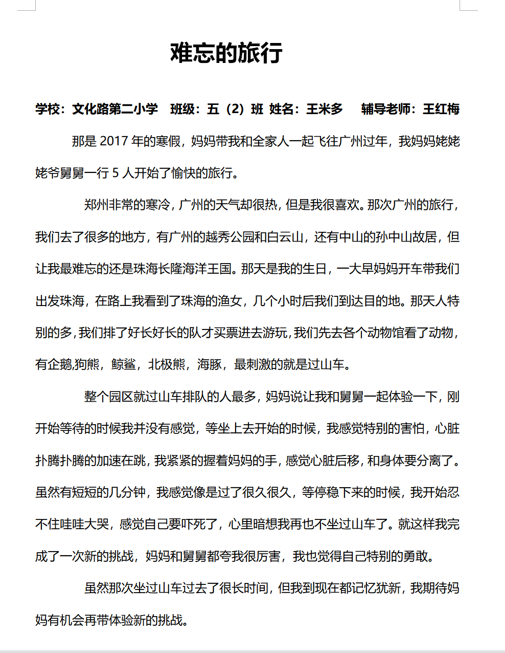 指导老师:王红梅 所属学校:金水区文化路第二小学