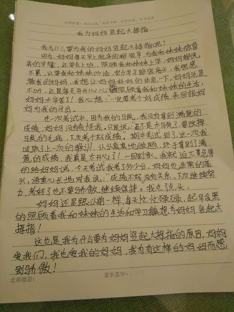 我为妈妈竖起大拇指