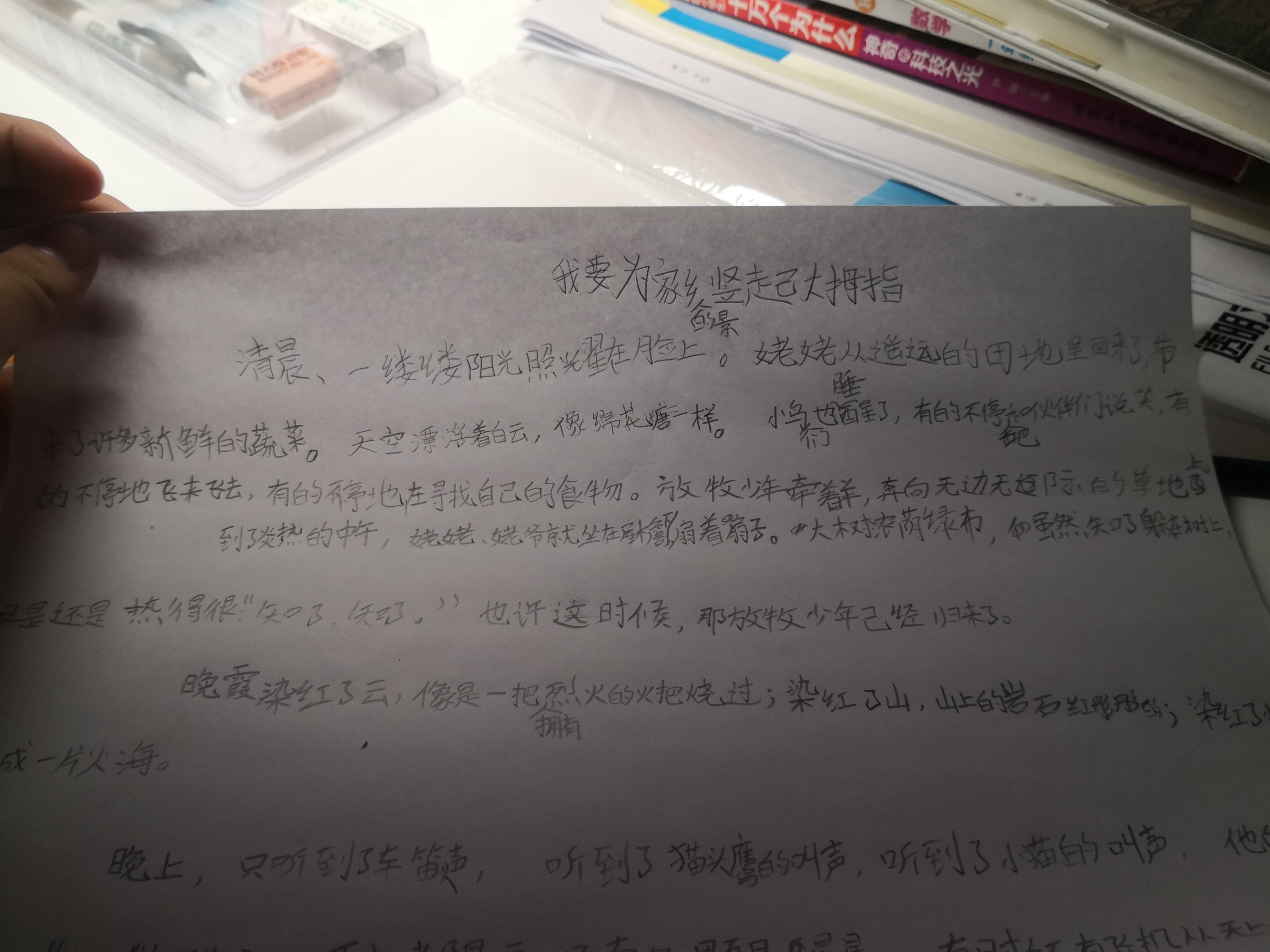 为家乡的景竖起大拇指