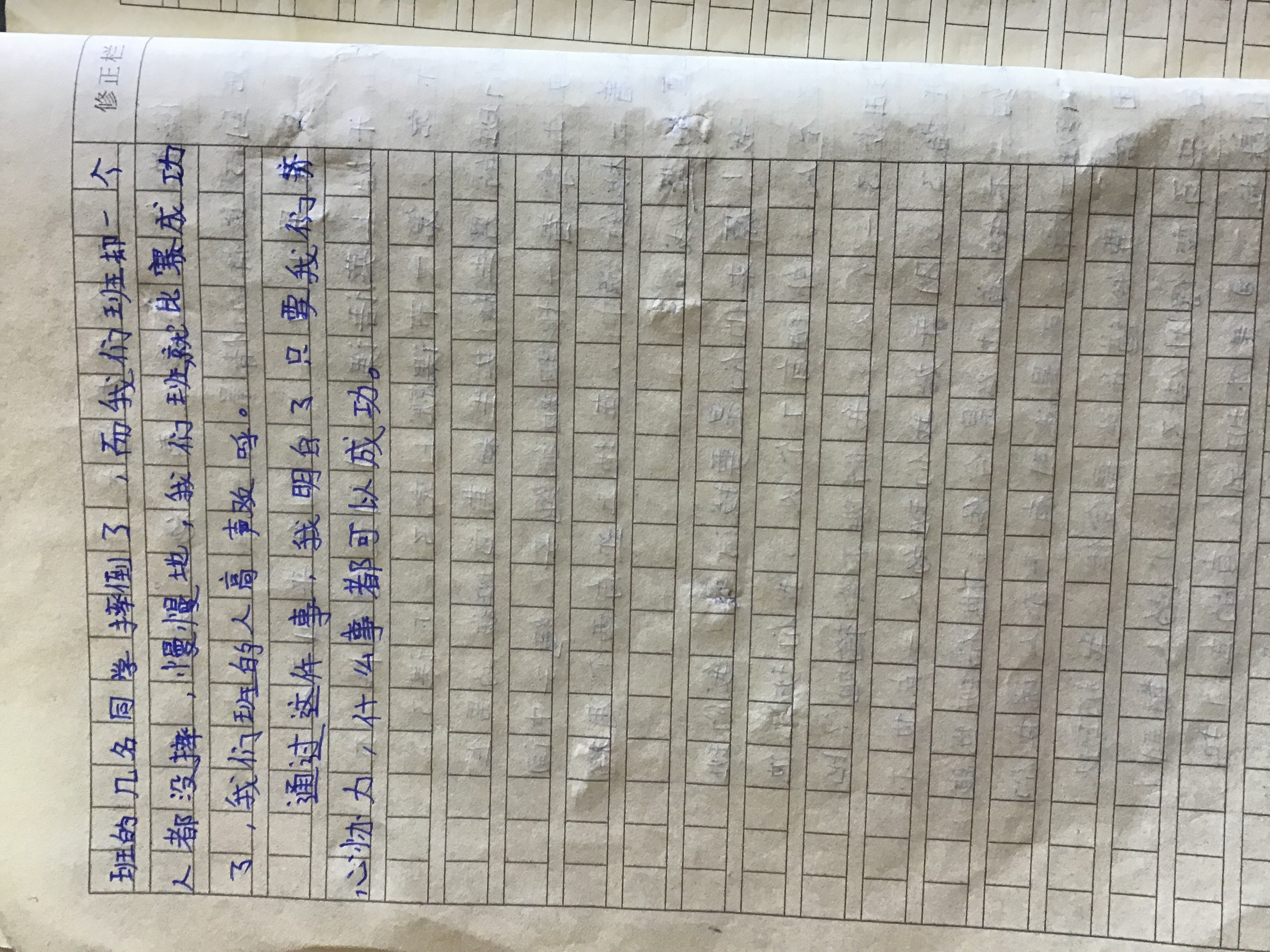 (4) 通过这件事,始我明白了只要我们齐心协力,什么事情都可以成功,合作的力量真大啊! 眉批:开头不能押题写,内容跑偏了。