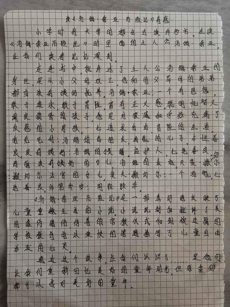 读《汤姆索亚历险记》有感