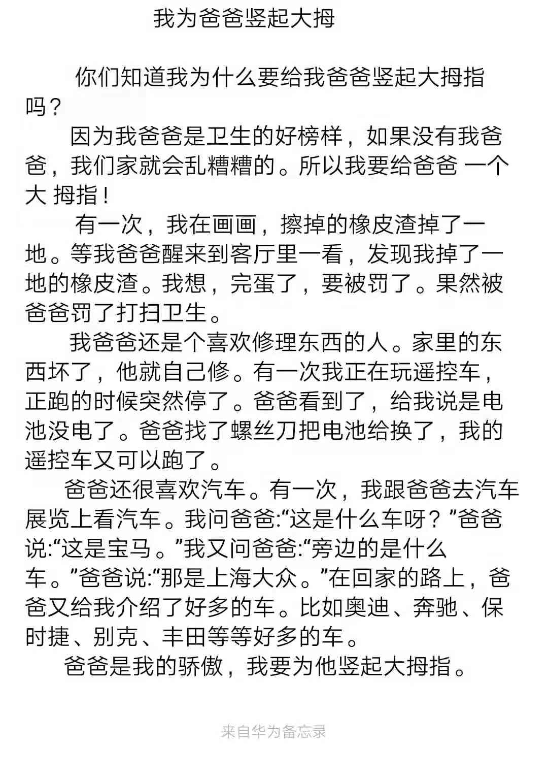 你的爸爸值得你竖起大拇指去夸奖他。文中描写出了爸爸好几个优点,并且都独立成段,结构很完整,继续努力!