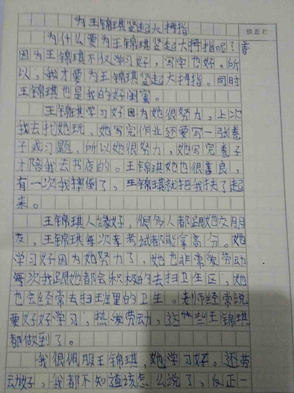 为王锦琪竖起大拇指