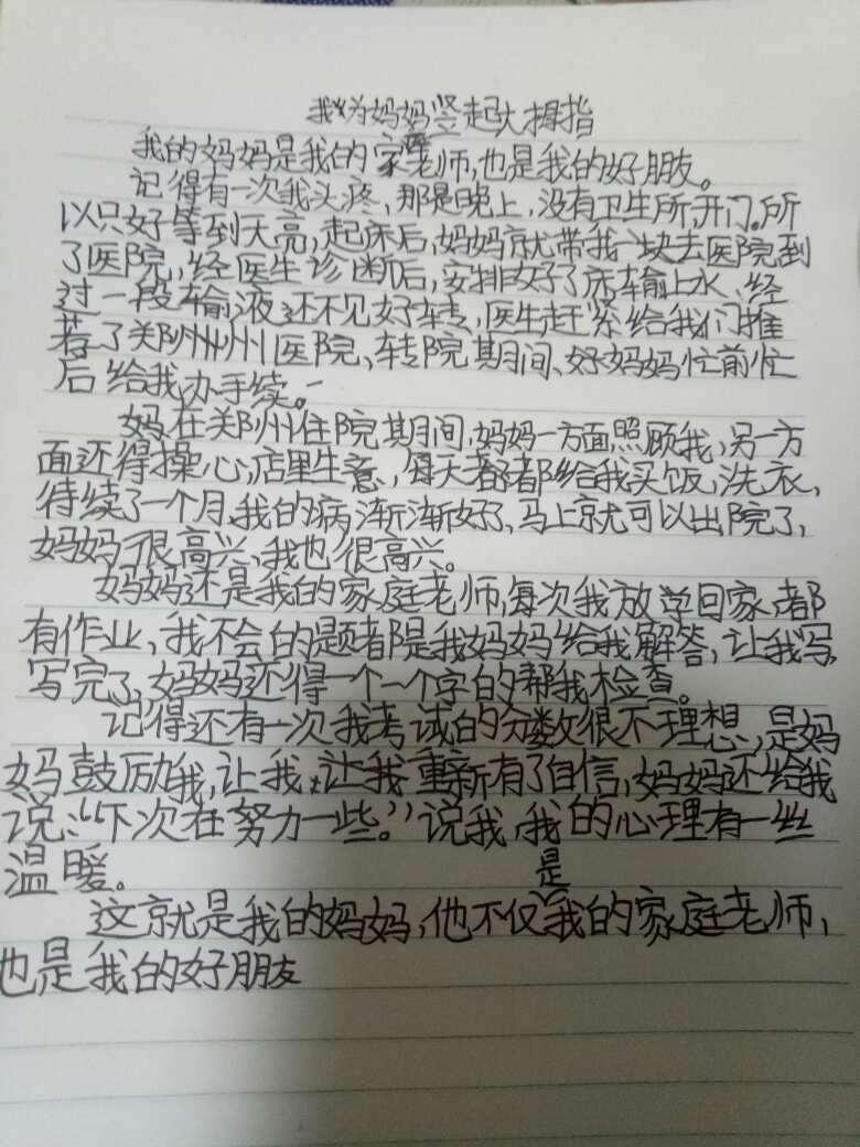 我为妈妈竖起大拇指