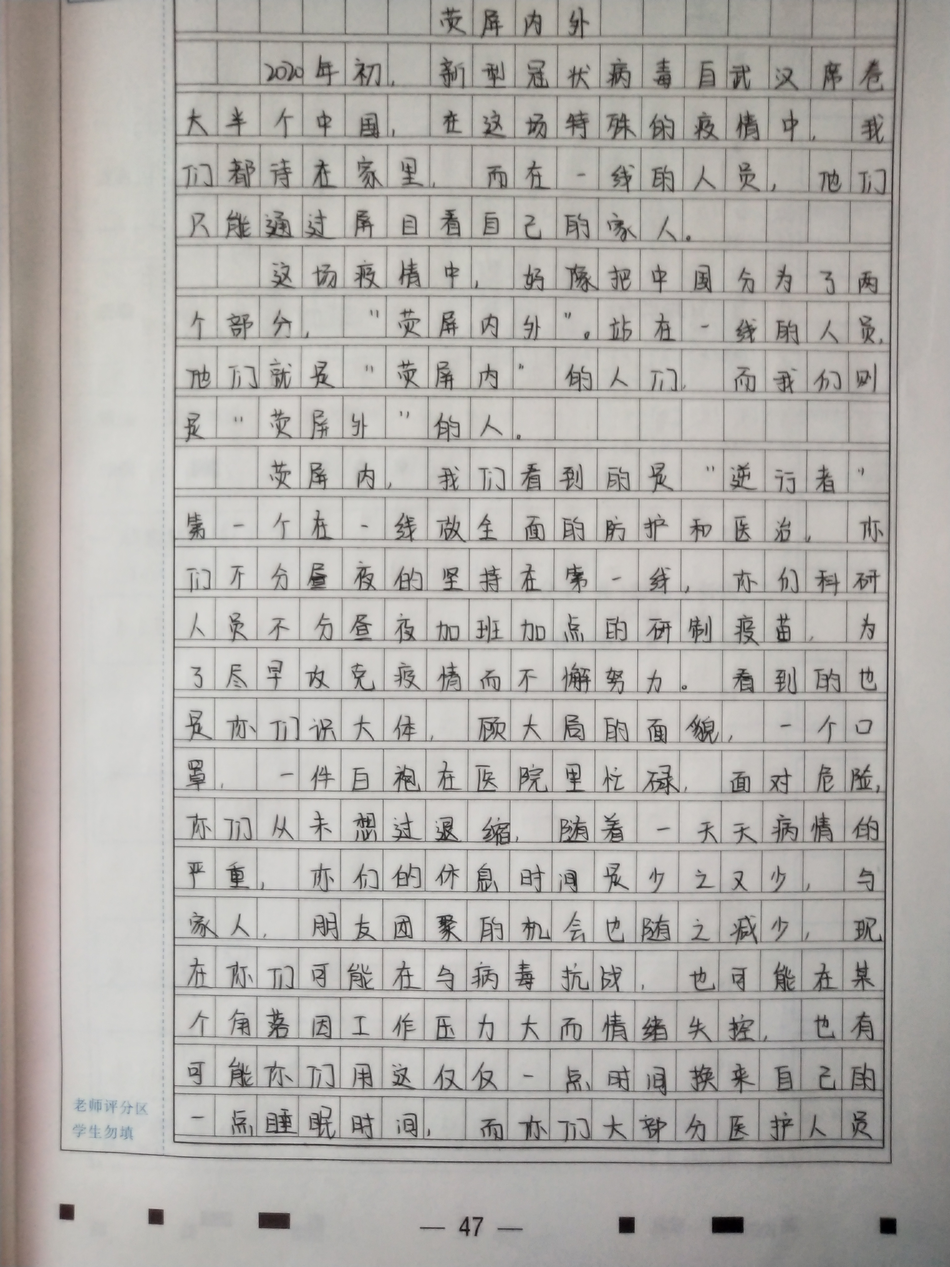 以下区域为指导老师点评区域,若您无法点评,请先核对此作文的指导老师名称与您的账户真实名称是否相同。