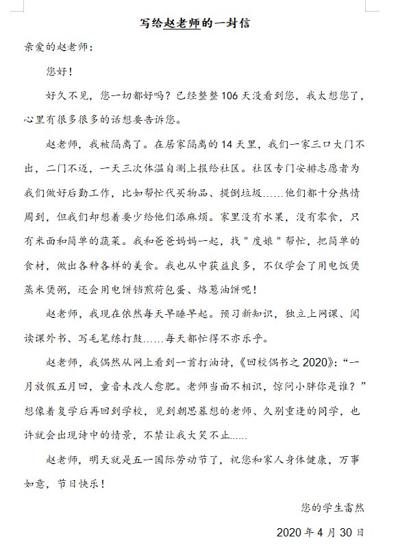 写给赵老师的一封信
