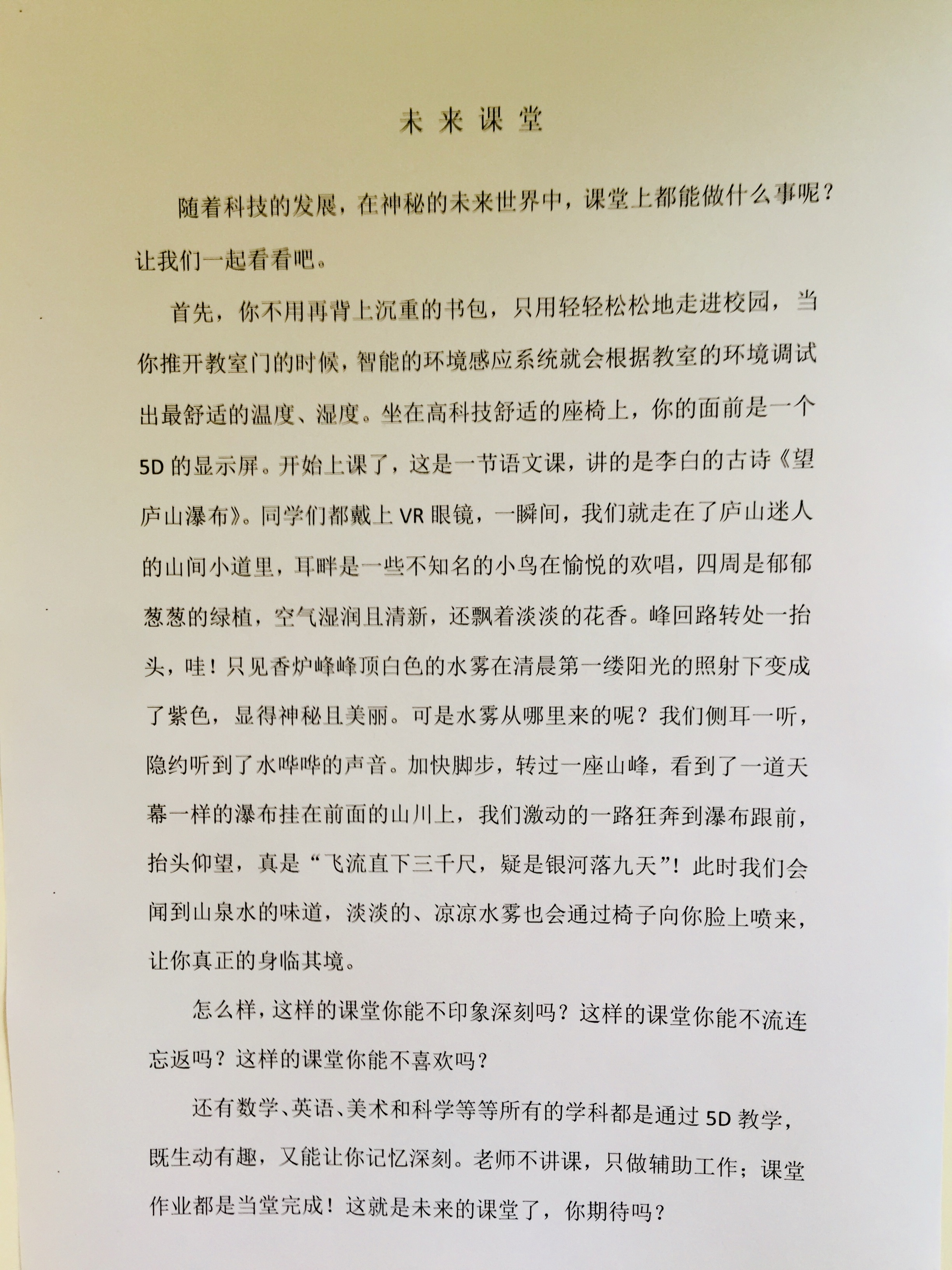 想象力丰富!闭上眼睛就能感觉到未来课堂已出现,激动!!!