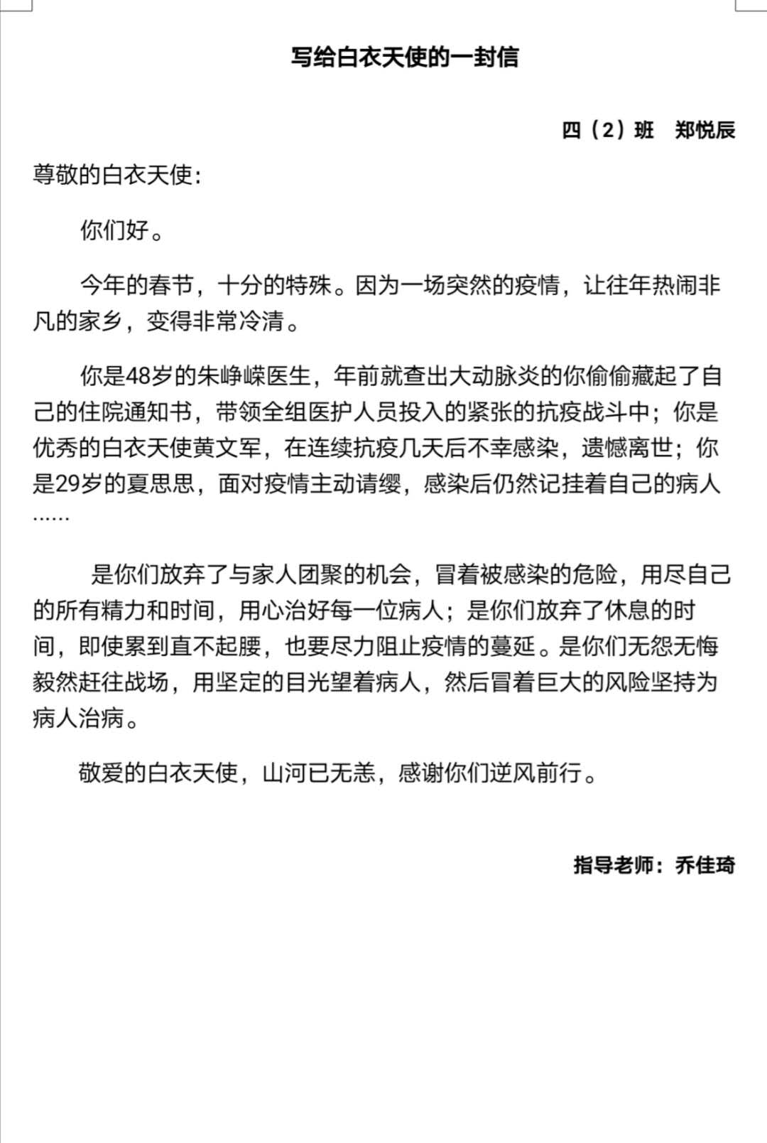写给白衣天使的一封信