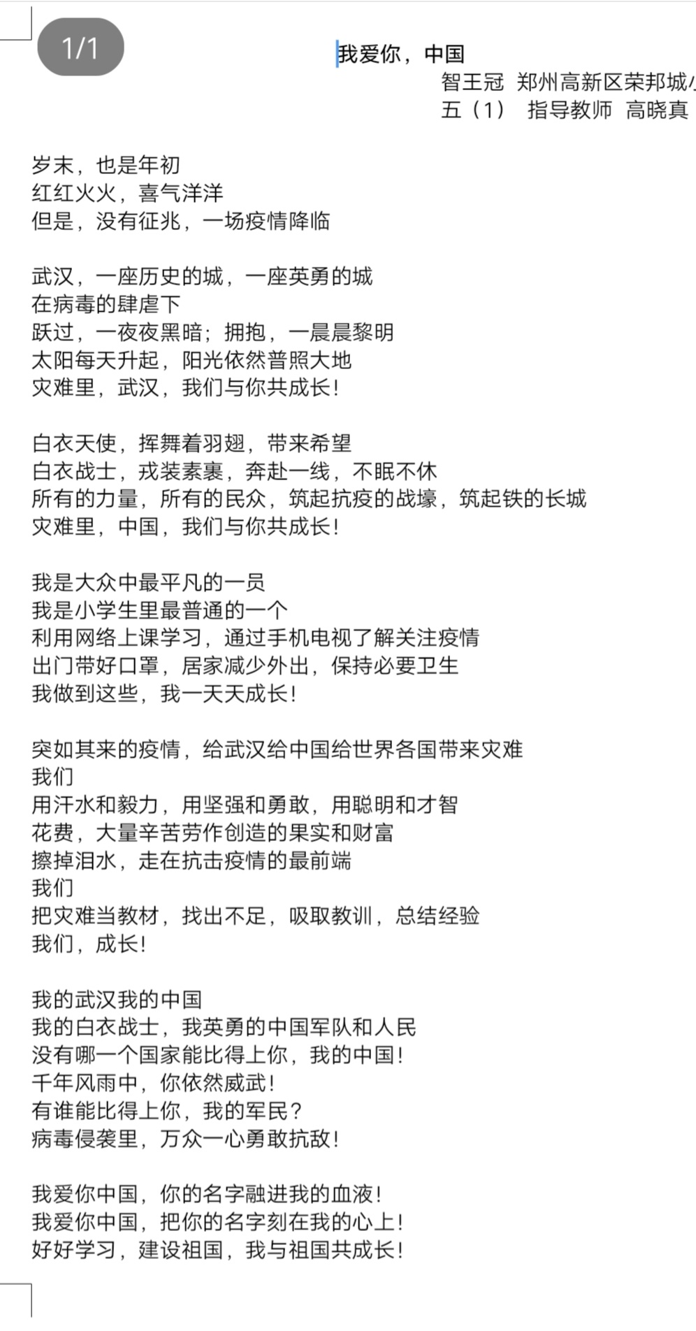 指导老师:高晓真 所属学校:华中师范大学附属高新区荣邦城小学