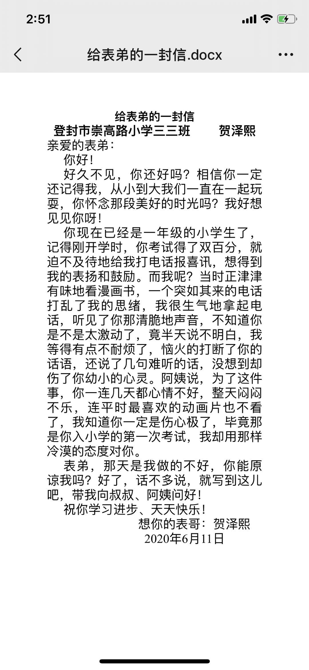 写给表弟的一封信