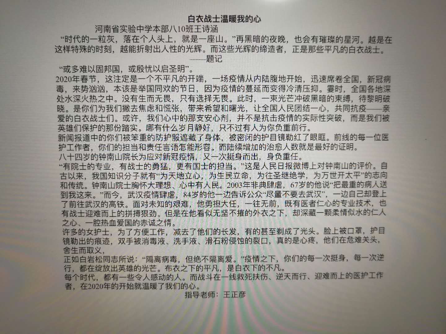 白衣战士温暖我的心