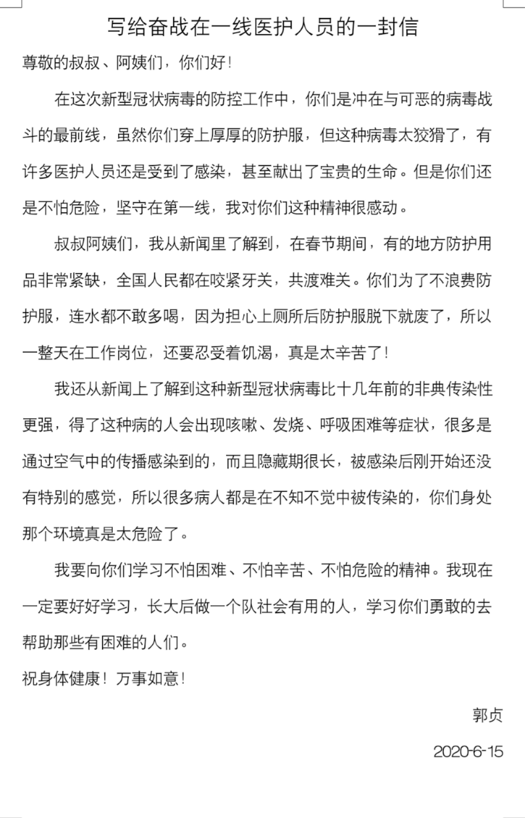写给奋战在一线医护人员的一封信