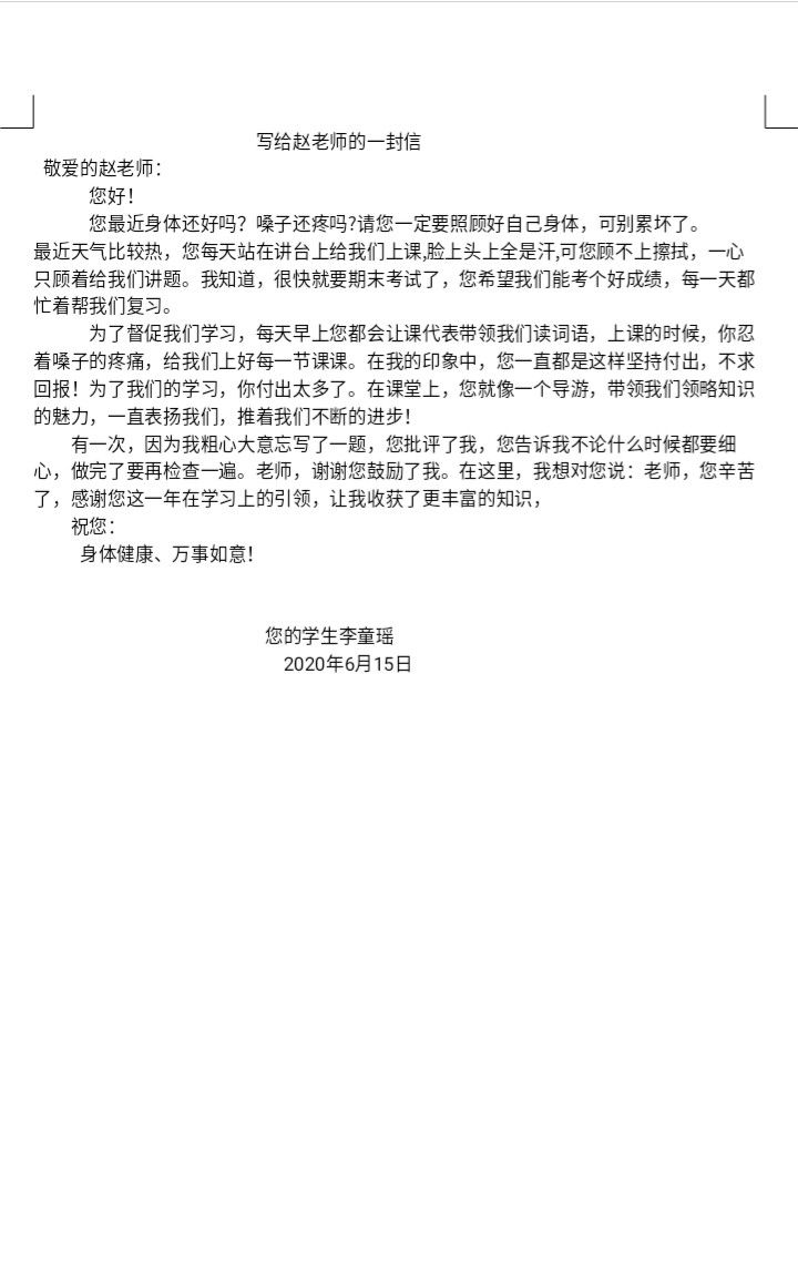 给赵老师的一封信