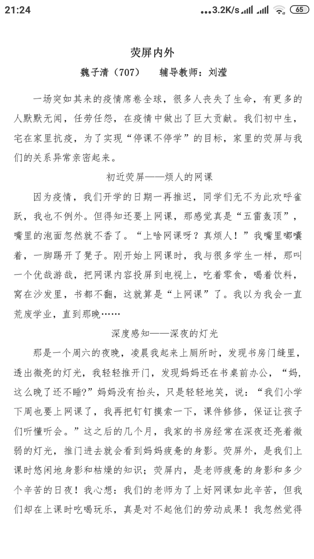 指导老师:刘滢滢 所属学校:巩义市子华初级中学
