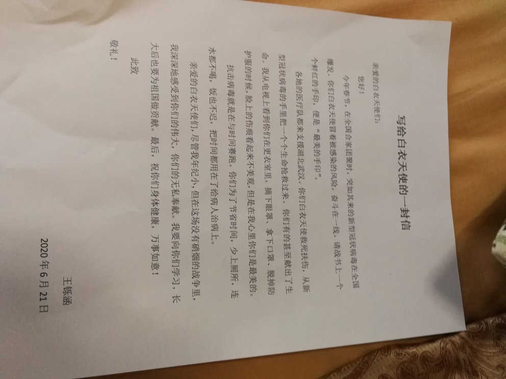 写给白衣天使的一封信。