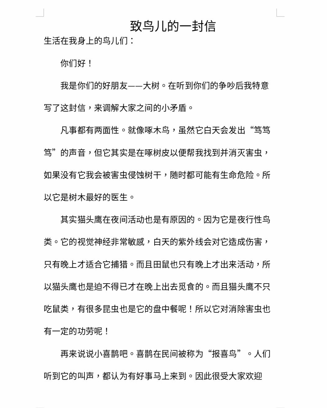 致鸟儿的一封信