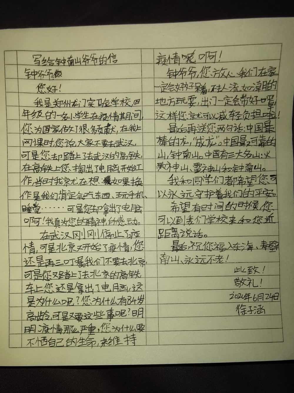 写给钟南山爷爷的信