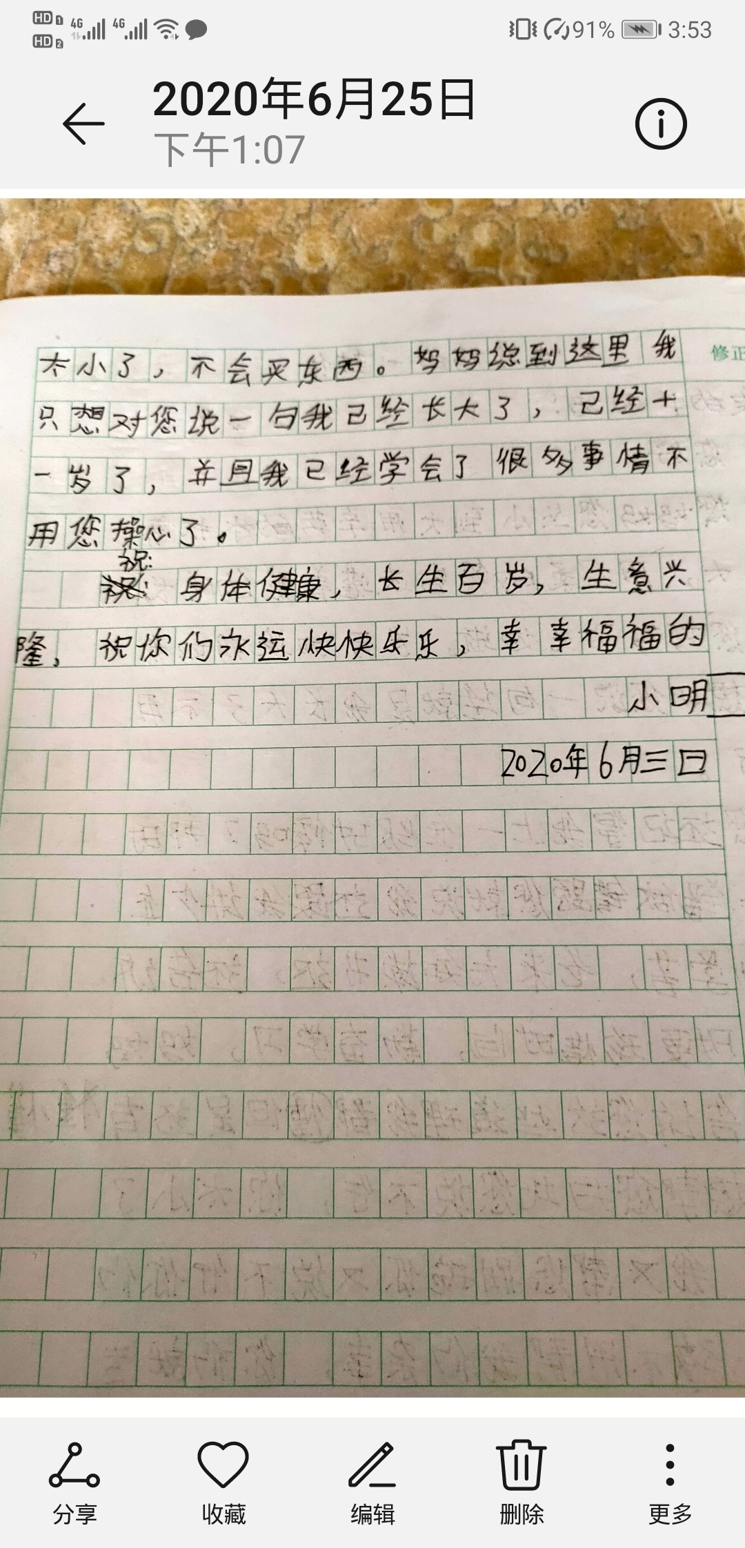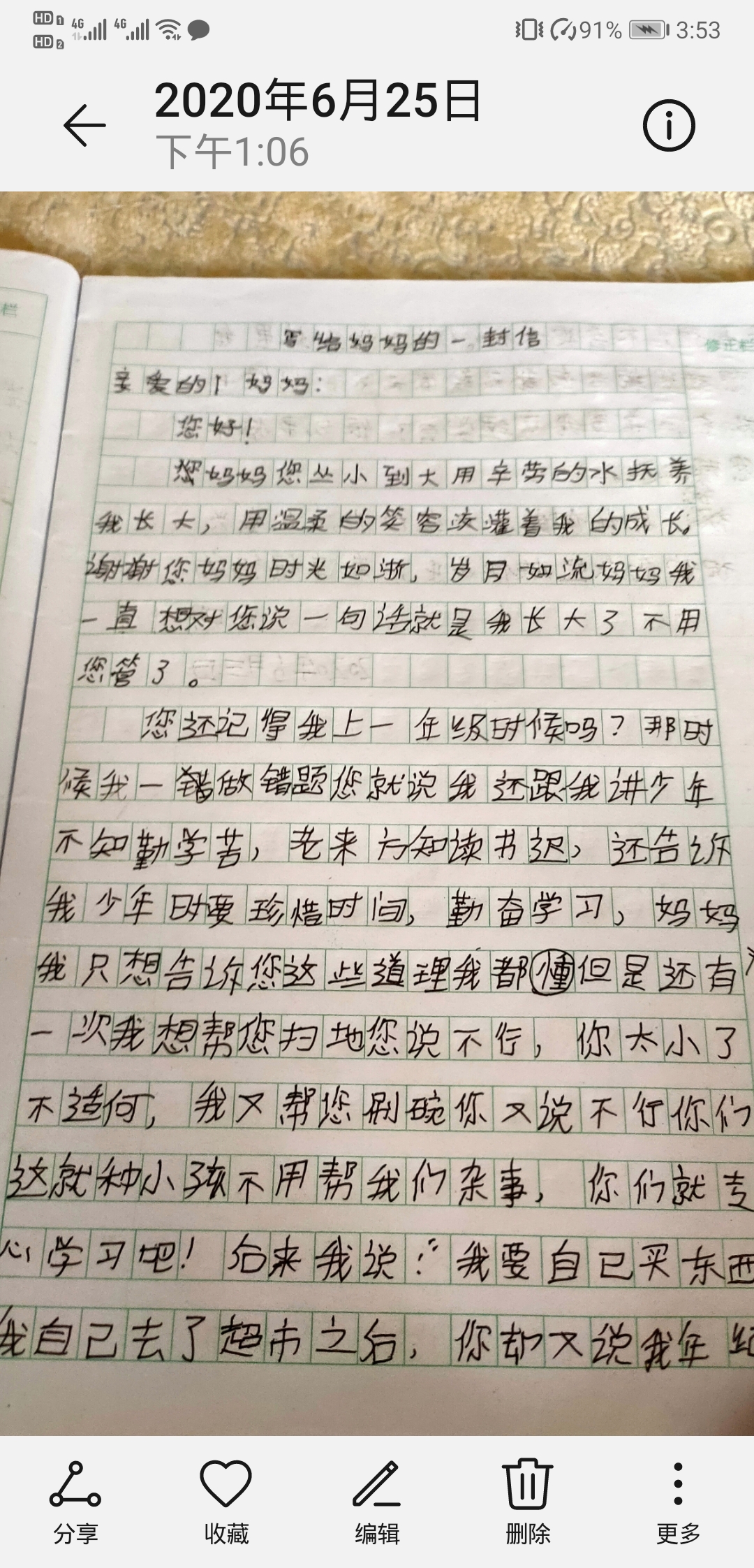 写给妈妈的一封信
