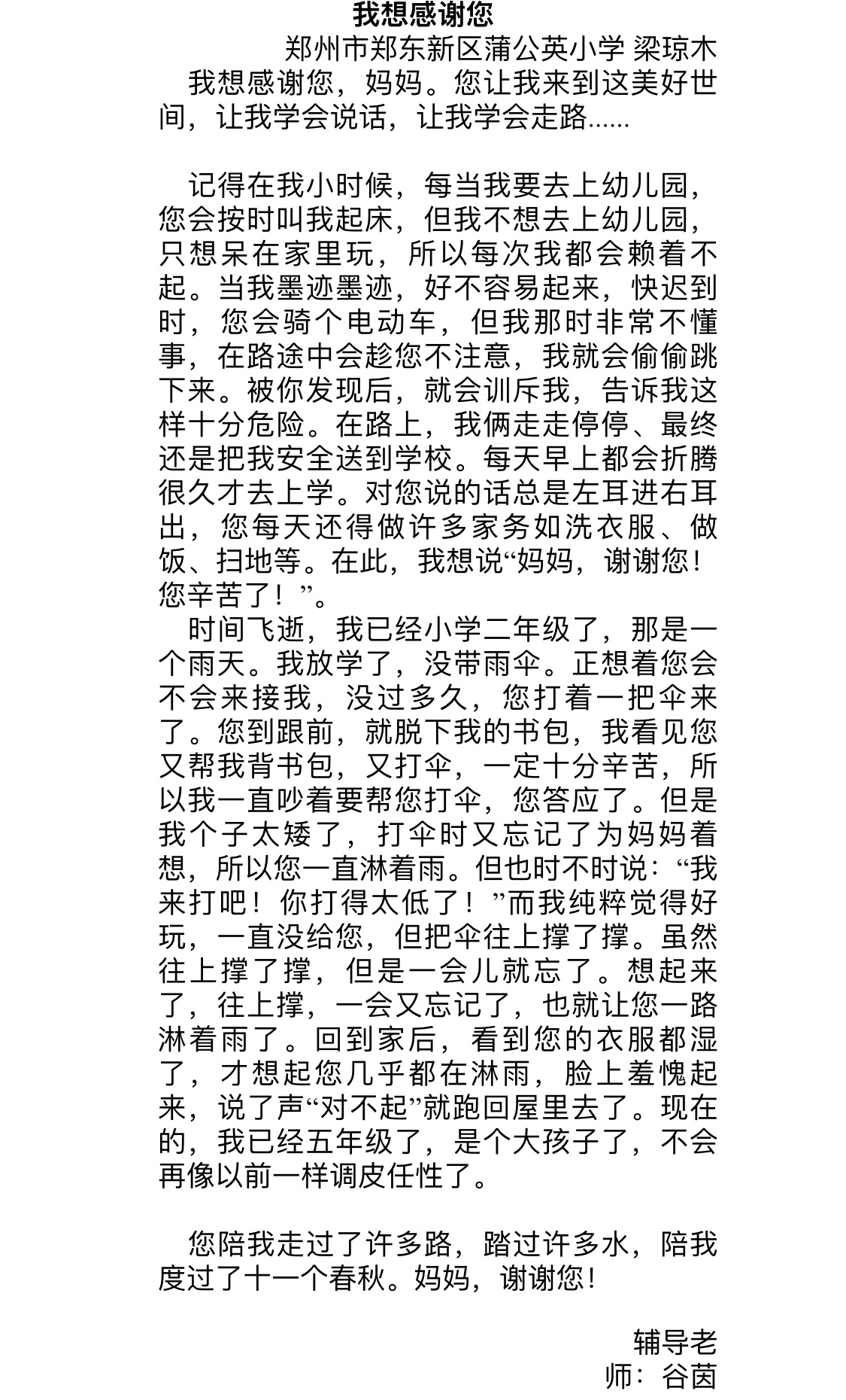 指导老师:谷茵 所属学校:郑东新区蒲公英小学