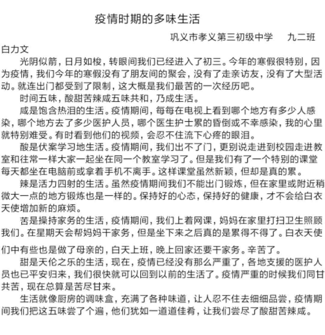 指导老师:刘素景 所属学校:巩义市孝义镇第三初级中学