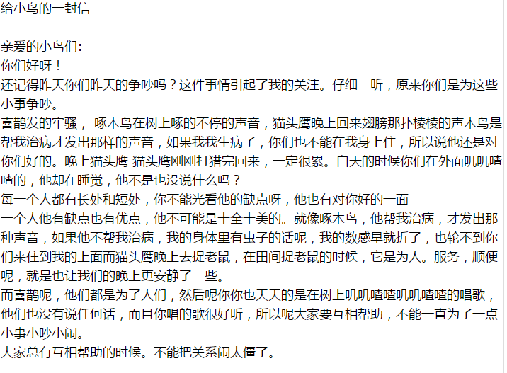 给小鸟的一封信