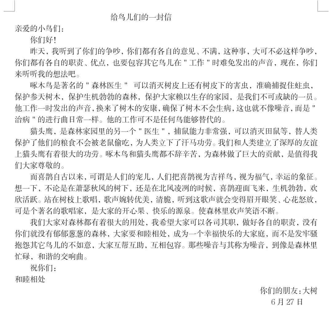 给鸟儿们的一封信