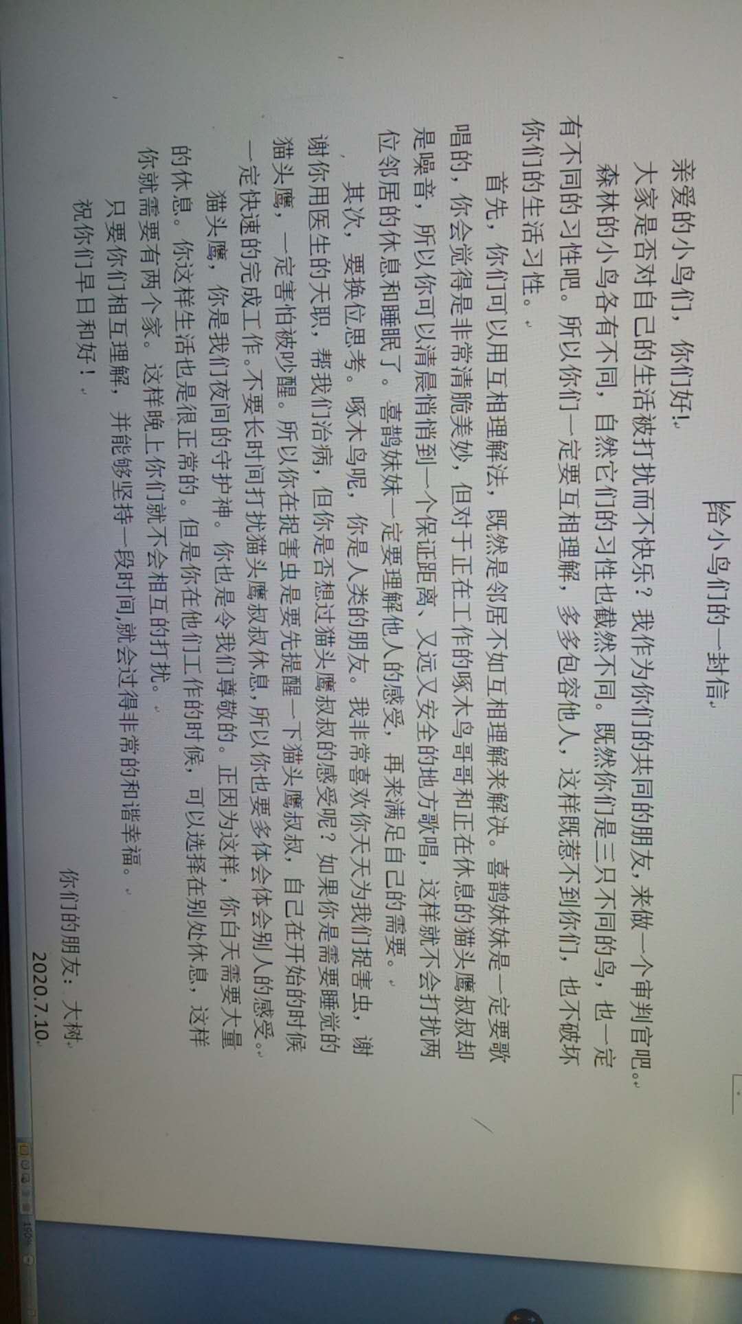 给小鸟们的一封信