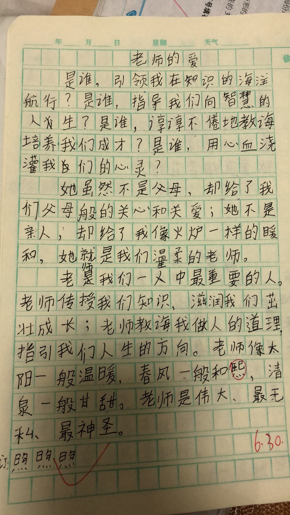 我收获了老师的爱